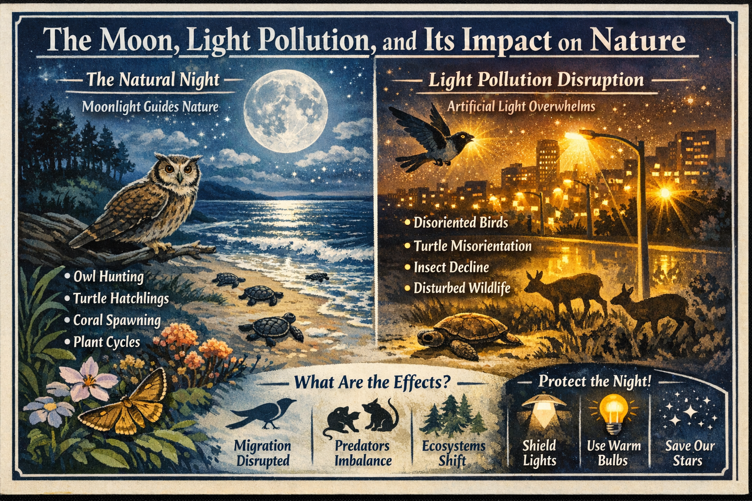 The introduction of constant artificial light effectively creates a perpetual "full moon" in many areas. This scrambles the biological cues that govern navigation, reproduction, and survival. Particularly in coastal and marshlands, where these effects are often most visible.