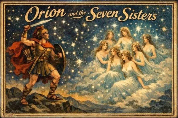 For our March meeting, Jim Webster provided the first draft of a public outreach presentation he created. This was on Constellation Mythology: Orion and the Seven Sisters, the Pleiades.