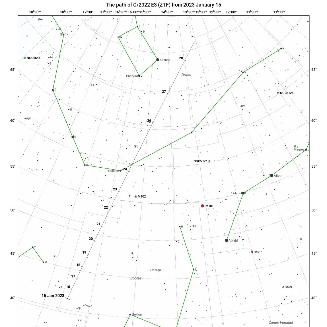 Comet C/2022 E3 (ZTF) is meant to become just about bright enough to be seen with the naked eye in the new year.