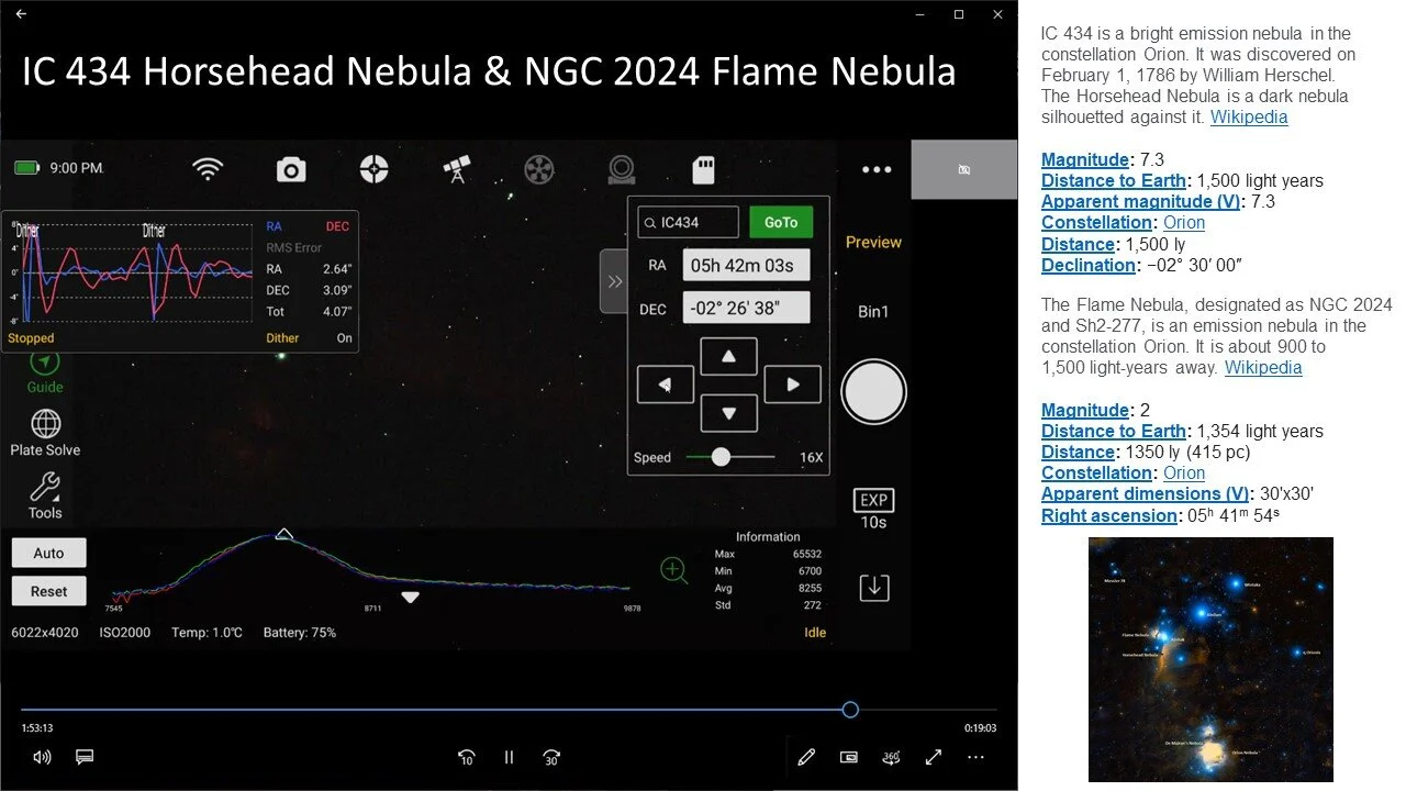 The image sample below is showing what is possible. This sample was of the Horsehead and Flame Nebulas. We had similar success with other objects.